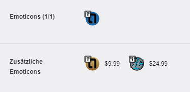 Als ich dann alle Sub Alerts erledigt hatte ging es noch kurz an die Emoticons, das heisst jeder Abonnent hat sein Icon. Also wenn man für 4.99 Abonniert hat man ein Icon zur Auswahl, dann noch ein anderes für Leite die 9.99 bezahlen und nochmal ein anderes für Leute die 24.99 bezahlen. Das war aber wie bereits erwähnt eigentlich eine kurze Sache da ich genau wusste was ich gerne haben möchte fürs erste. Die drei Sub Emotes kann man im Titelbild sehen, Natürlich zeige ich euch diese auch gerne noch hier direkt ![]()