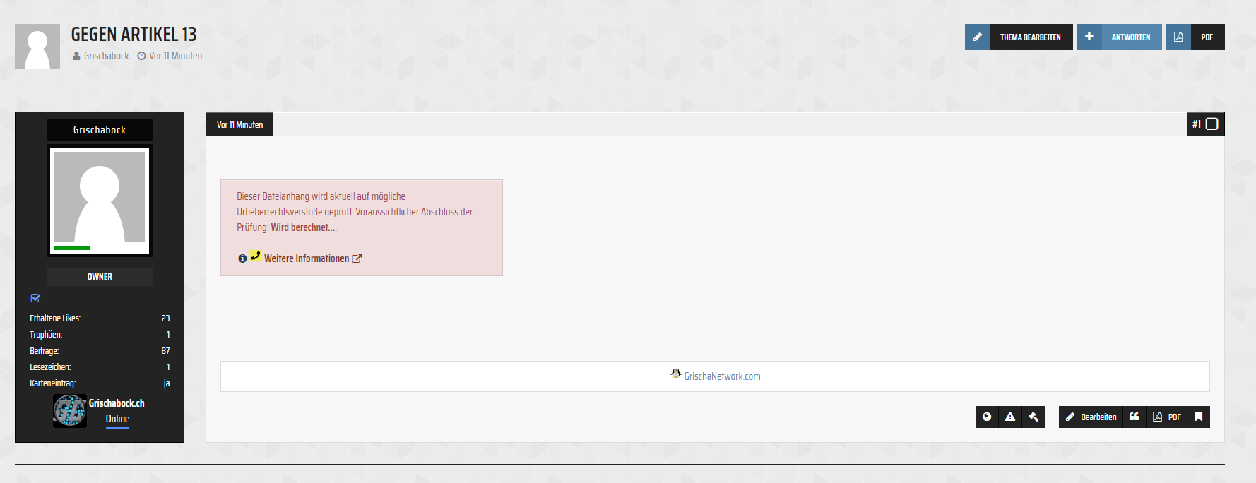 Diesen Sonntag Protestieren Millionen von Community`s und Foren gegen Artikel 13 indem gezeigt wird was passiert wenn dieser Artikel 13 denn kommt. Jeder auf seine Weise, einige versetzen ihre Community in den Wartungsmodus mit Texten wie zb.