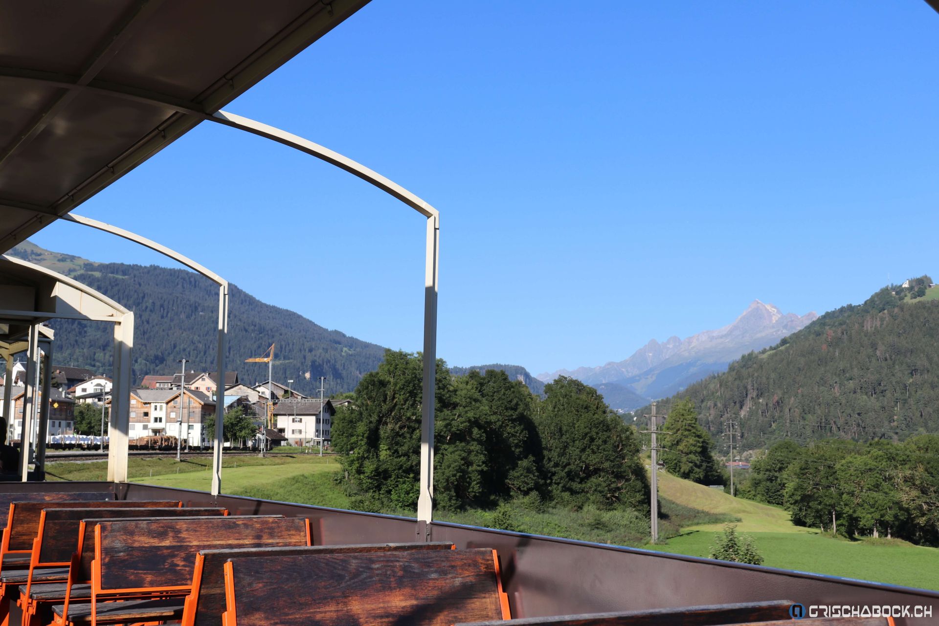 Von Landquart nach Ilanz mit dem Erlebniszug Rheinschlucht der Rhätischen Bahn und von da aus mit den regulären Zügen der RhB und MGB auf den Oberalppass.