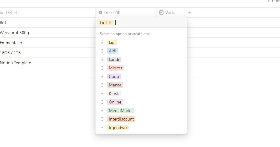 Damit der Einkauf besser und Strukturierter durchgeführt werden kann, sollen Produkte auch einem Geschäft zugewiesen werden. Damit ist es möglich danach den Filter für das jeweilige Geschäft anzuwenden.