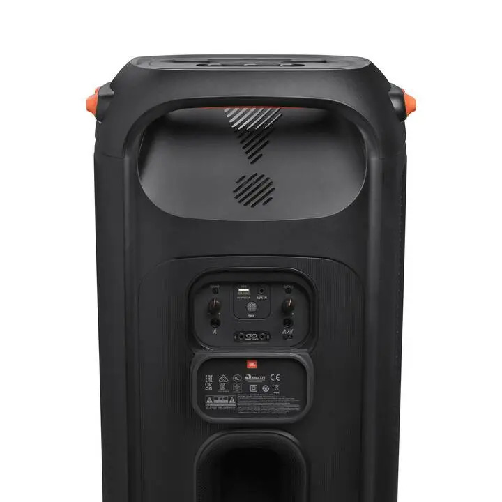 Schaffe eine sofortige musikalische Verbindung mit 800 kraftvollen Watt an leistungsfähigem JBL Original Pro Sound. Zwei 70-mm-Hochtöner und ein 216-mm-Tieftöner liefern zusammen mit dem abgestimmten Bassreflex-Anschluss detailreiche Soundperfektion für Musik, die so laut ist, dass man den Beat förmlich spüren kann.